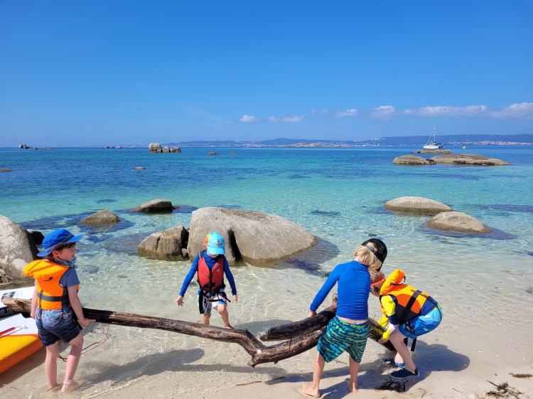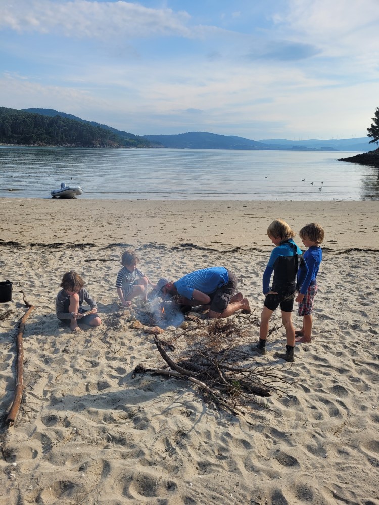 In Camarinas, we met other fabulous sailing families, had dolphins swimming amongst our anchorage at sunset and had BBQs on the beach where the boys learnt ‘interesting’ techniques for starting fires from fellow squids (boat kids).