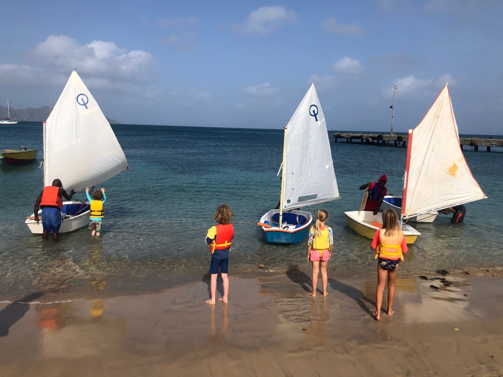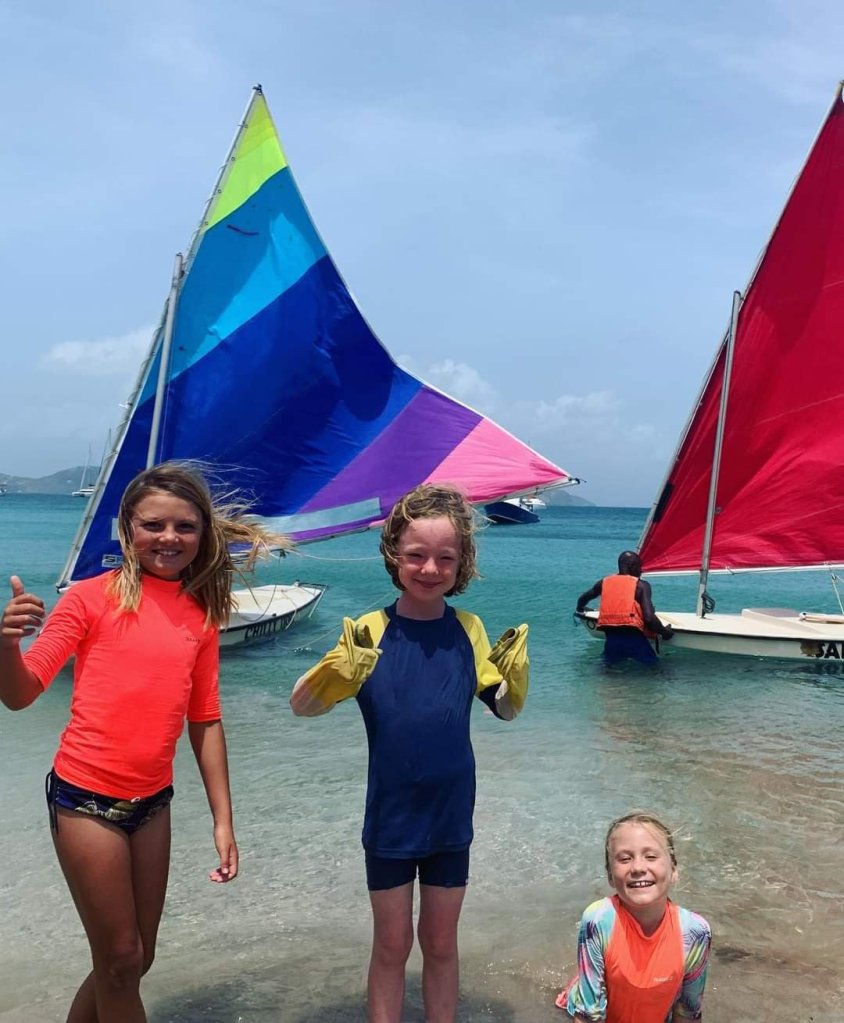 Next up was Mayreau, the smallest of the inhabited Grenadine Islands which measures less than 0.5 square miles and has a population of less than 300 people (and many, many more goats). Here Barnaby and Zennor, with their SV Amani & SV Gambler boat kid friends, had a dinghy sailing lesson with the Mayreau Junior Sailing club.