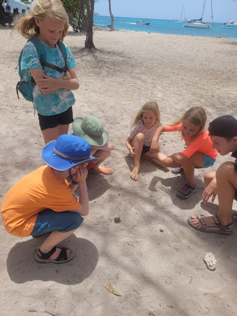 From Mayreau, it was a short sail to the Tobago Cays, an archipelago comprising five small, uninhabited islands and extensive coral reefs. Here we spent a week snorkelling and exploring with our kid boat friends from SV Amani, SV Cinnamon and SV Gambler.