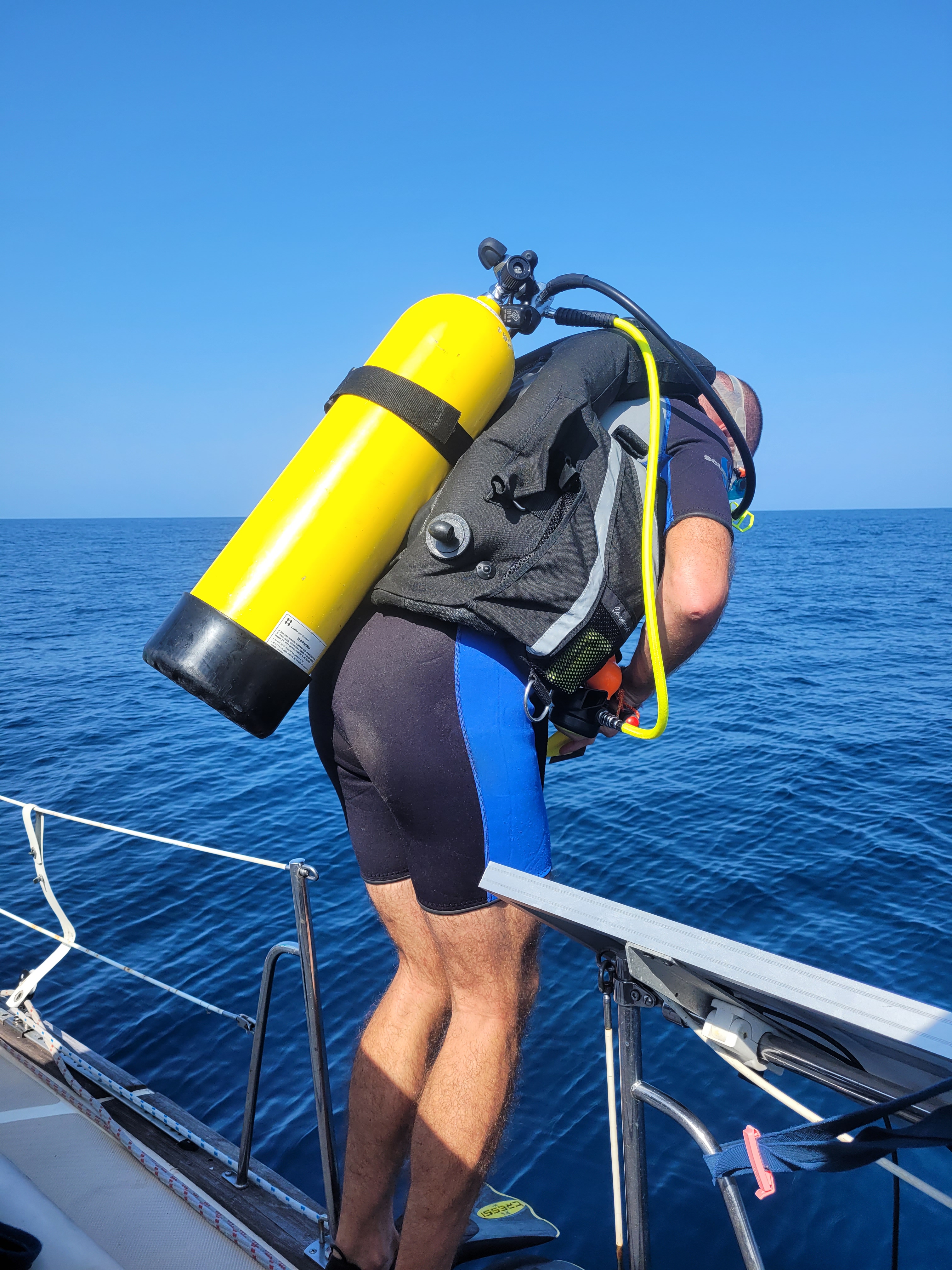 On 23rd February, with bilges bulging with provisions, we were escorted out of La Playita anchorage by a pod of Pacific bottlenose dolphins. We anchored overnight off Isla Taboga in order to scrub Mowzer’s bottom, removing all barnacles and soft growth, a requirement for our next destination, The Galapagos, 1000nm to the West.