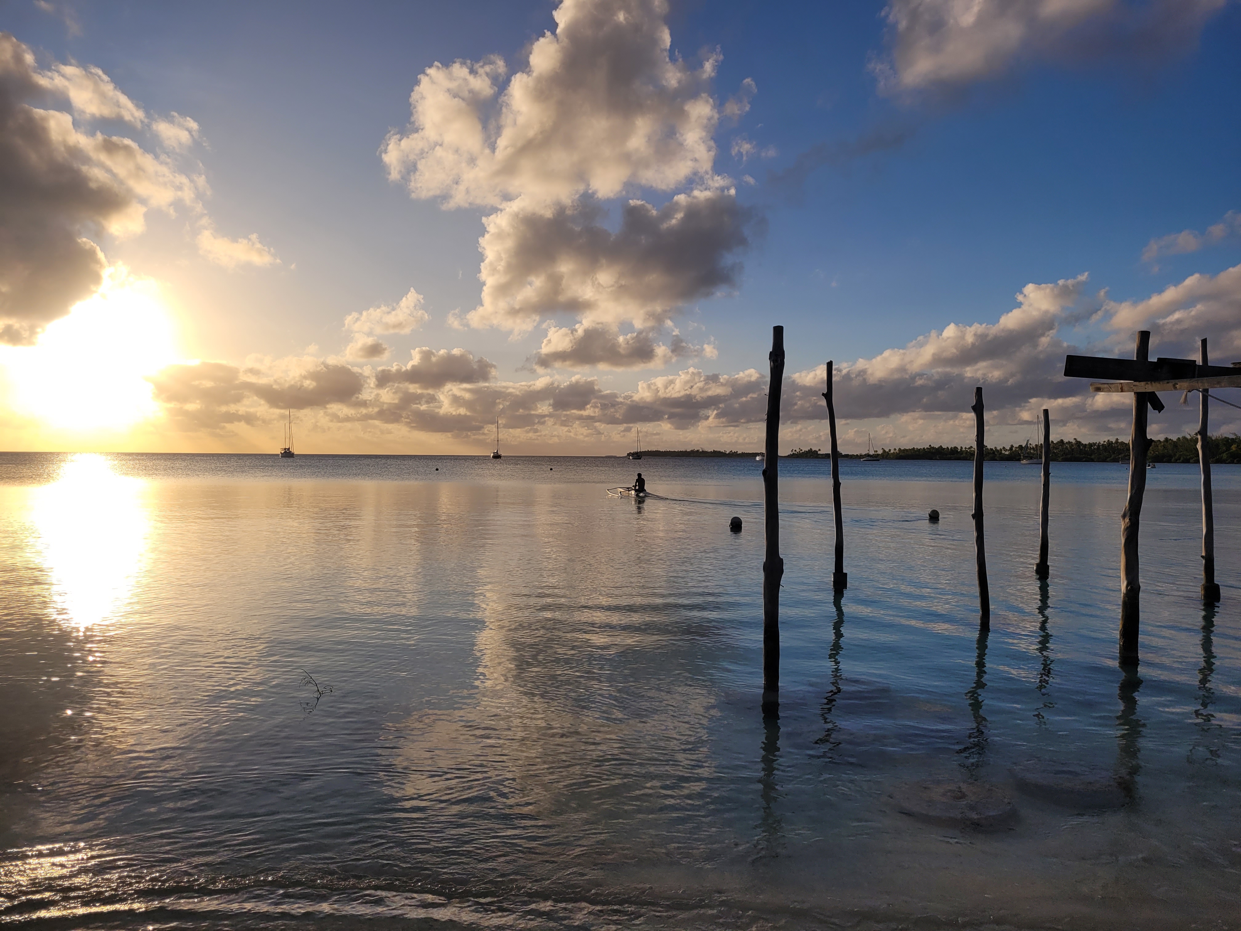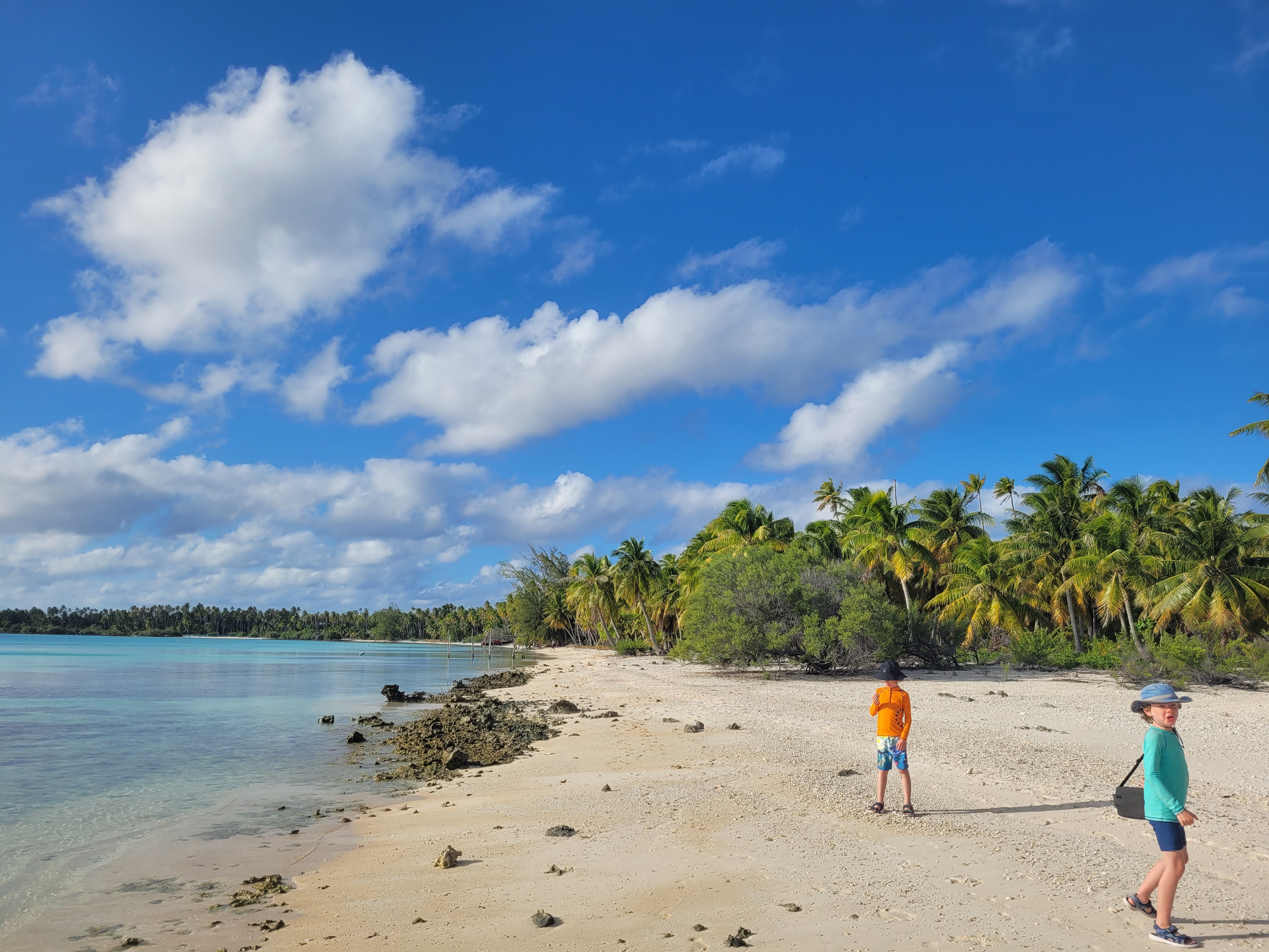 Toau, the next, and our final atoll in the Tuamotus, was a much quieter spot than Fakarava, with only 5 other cruising boats at anchor, two part-time inhabitants, James and Wallis, some friendly lizards and a gazillion palm trees.