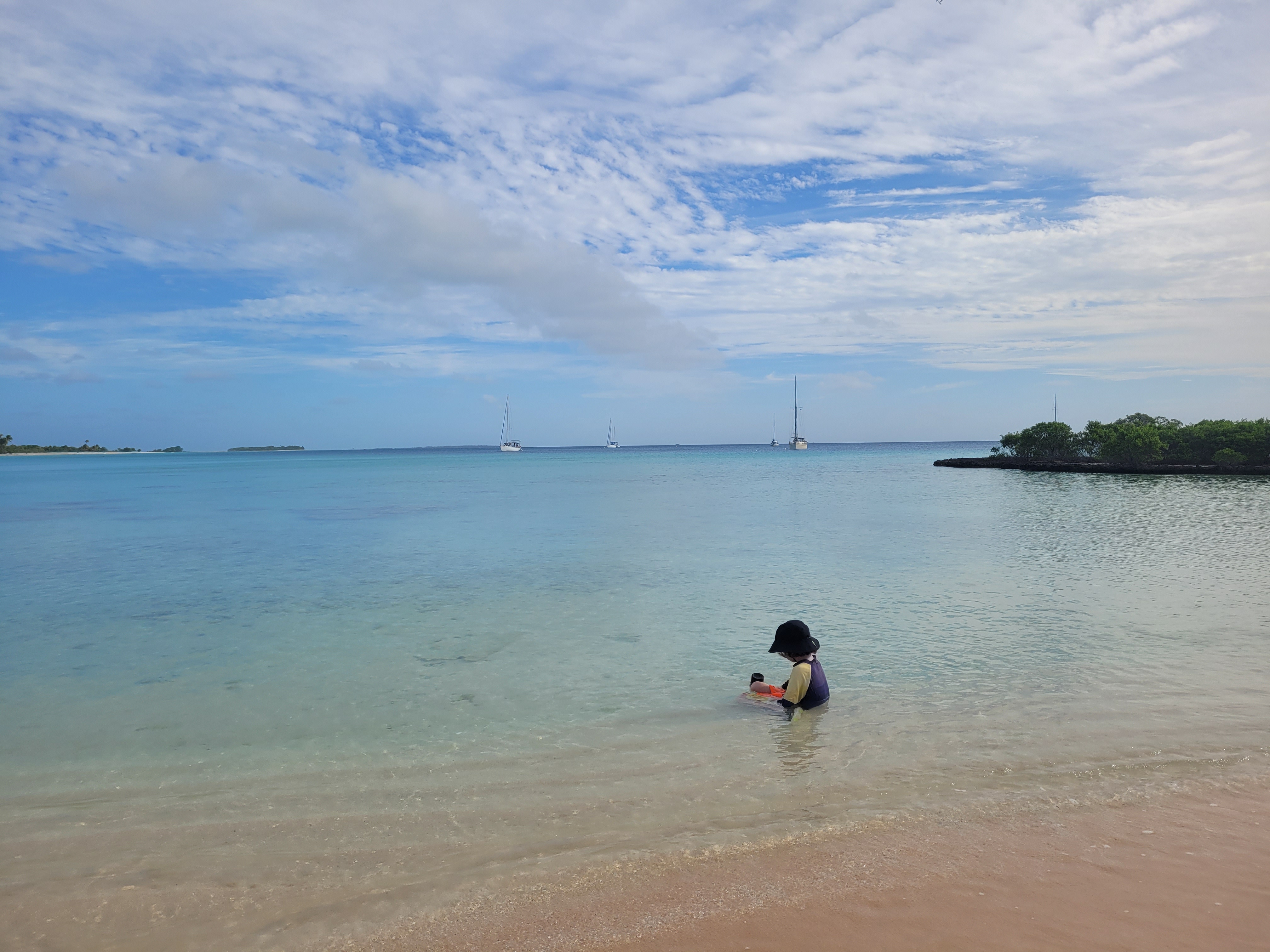 An atoll is comprised of a circular coral reef surrounding a lagoon formed from a long-since sunken volcano. Access into and out of the lagoons invariably requires some tricky navigation, dodging uncharted bommies, avoiding fast-flowing counter currents and gnarly breaking waves. Getting the timing right to navigate the pass is a bit of a dark art, as conditions are influenced by multiple factors and local advice is often contradictory. Sometimes we got it right, other times we took a thrashing and were spat out of the pass, Mowzer bucking all the way, our nerves thoroughly rattled. Toau pass fell into the latter camp!