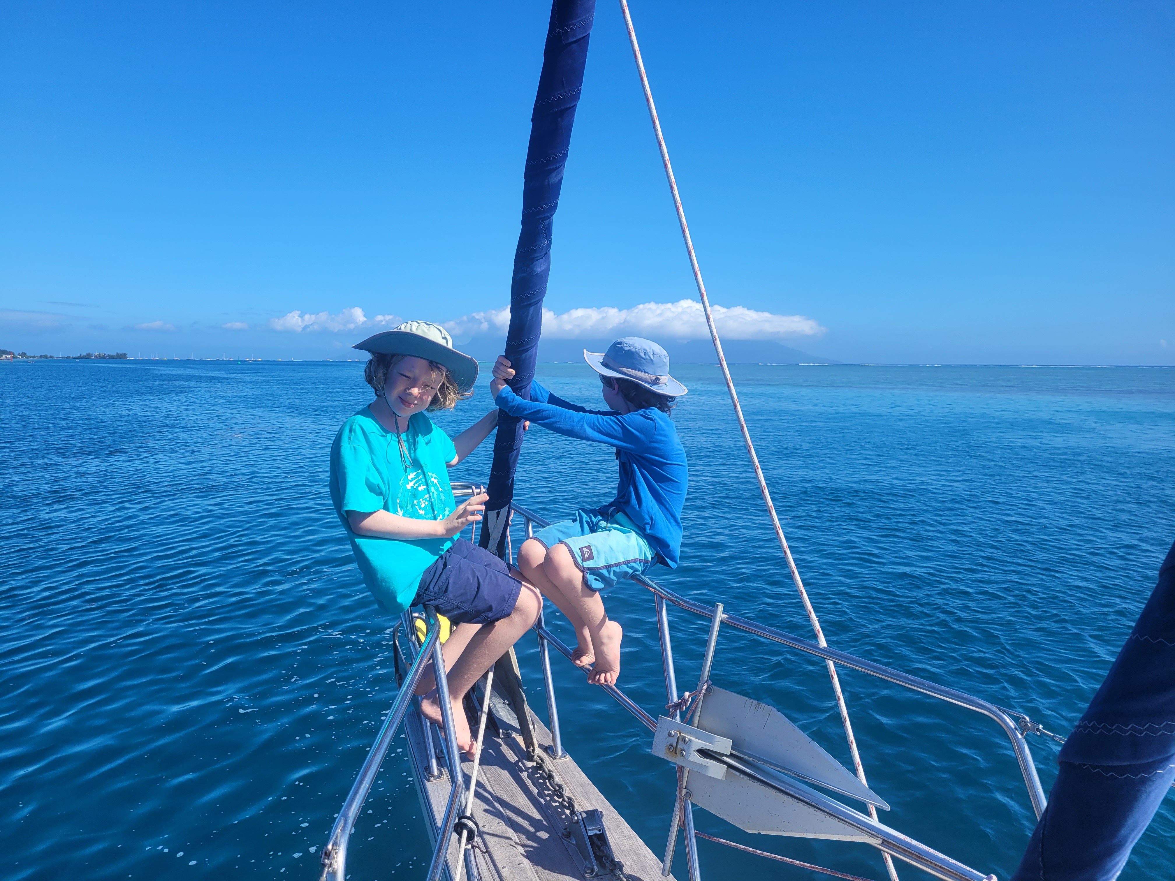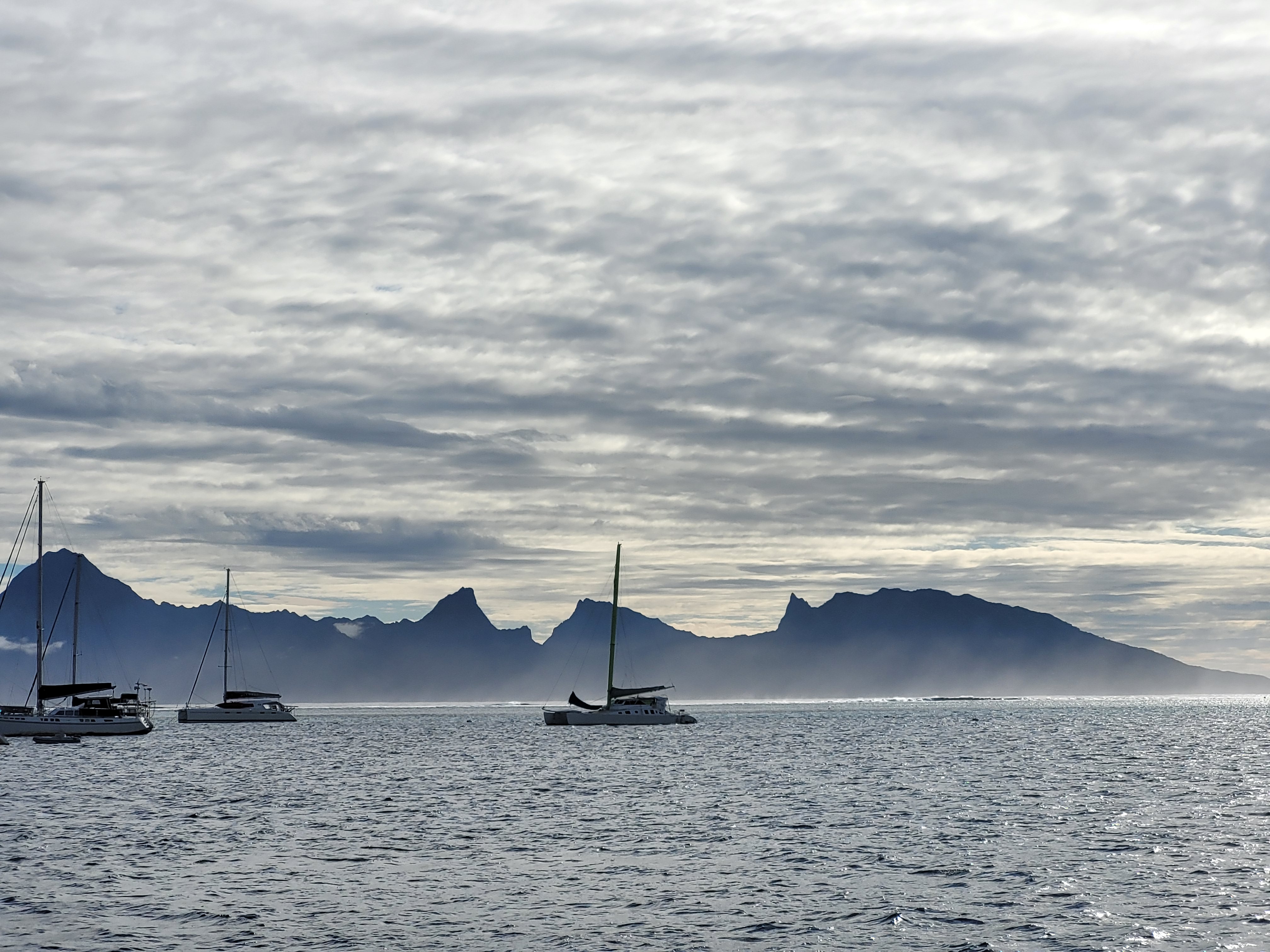When the scarcity of fresh fruit and veg in the Tuamotu archipelago became intolerable for Mowzer’s (mostly) vegetarian crew, we up anchored and headed westwards towards the supermarkets of Tahiti!