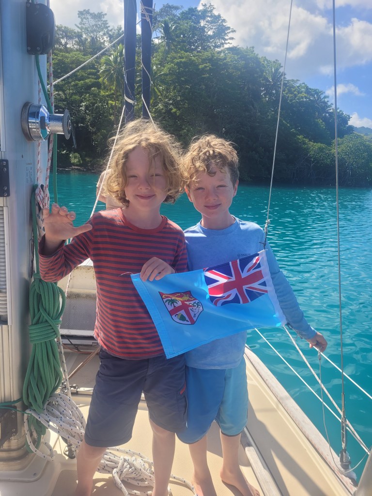 Following our incredible whale encounters in Tonga, we took the next decent weather window to continue our travels westwards. . It was a mostly gentle, down-wind sail, over 400nm/ 3 days to the clearance port of Savusavu on the island of Vanua Levu in Fiji. We arrived at dawn and tied up on the quarantine dock at Nawi Marina. We were greeted by super friendly, sulu wearing immigration, customs, and biosecurity officials and were soon cleared into the country.