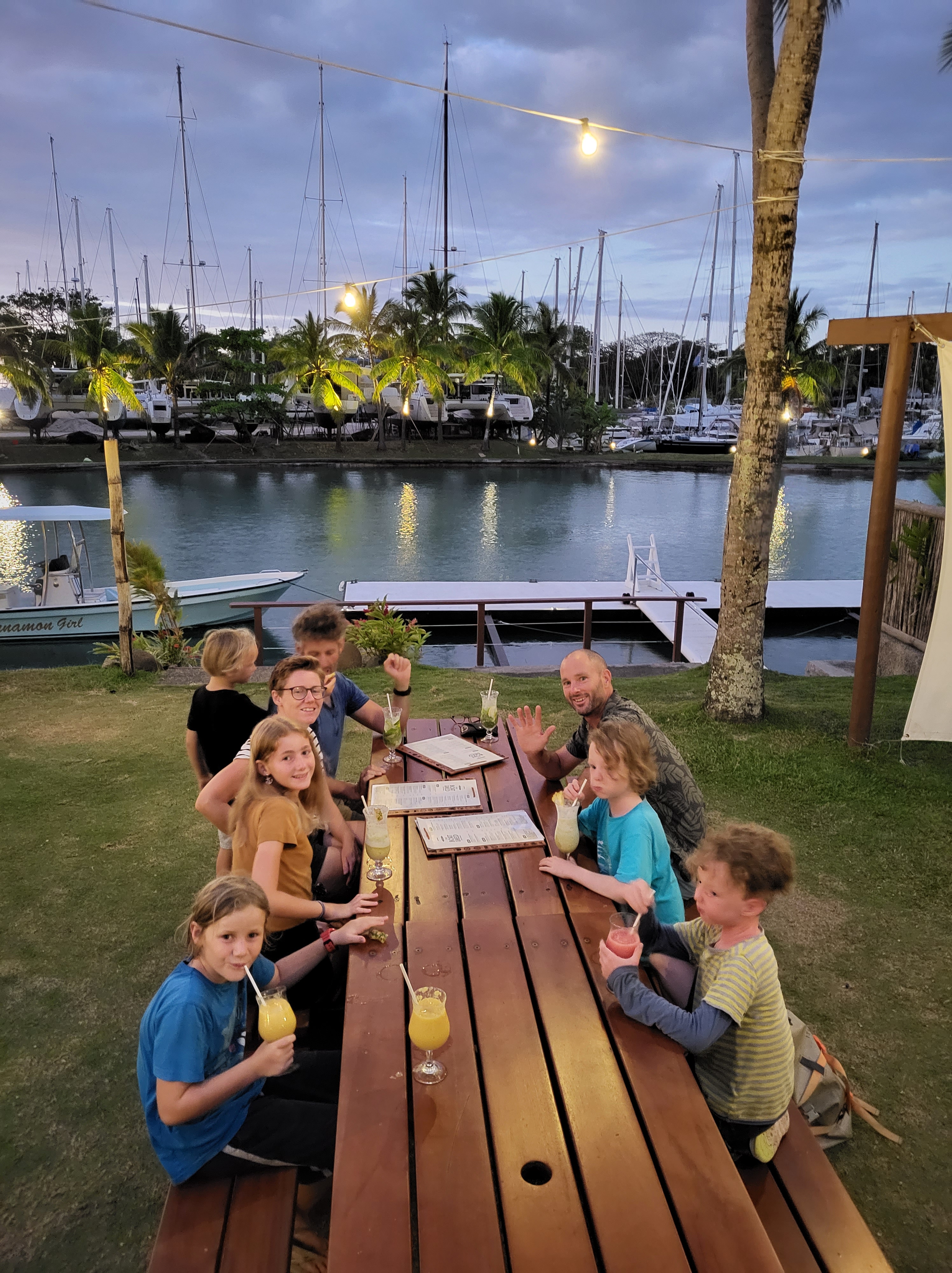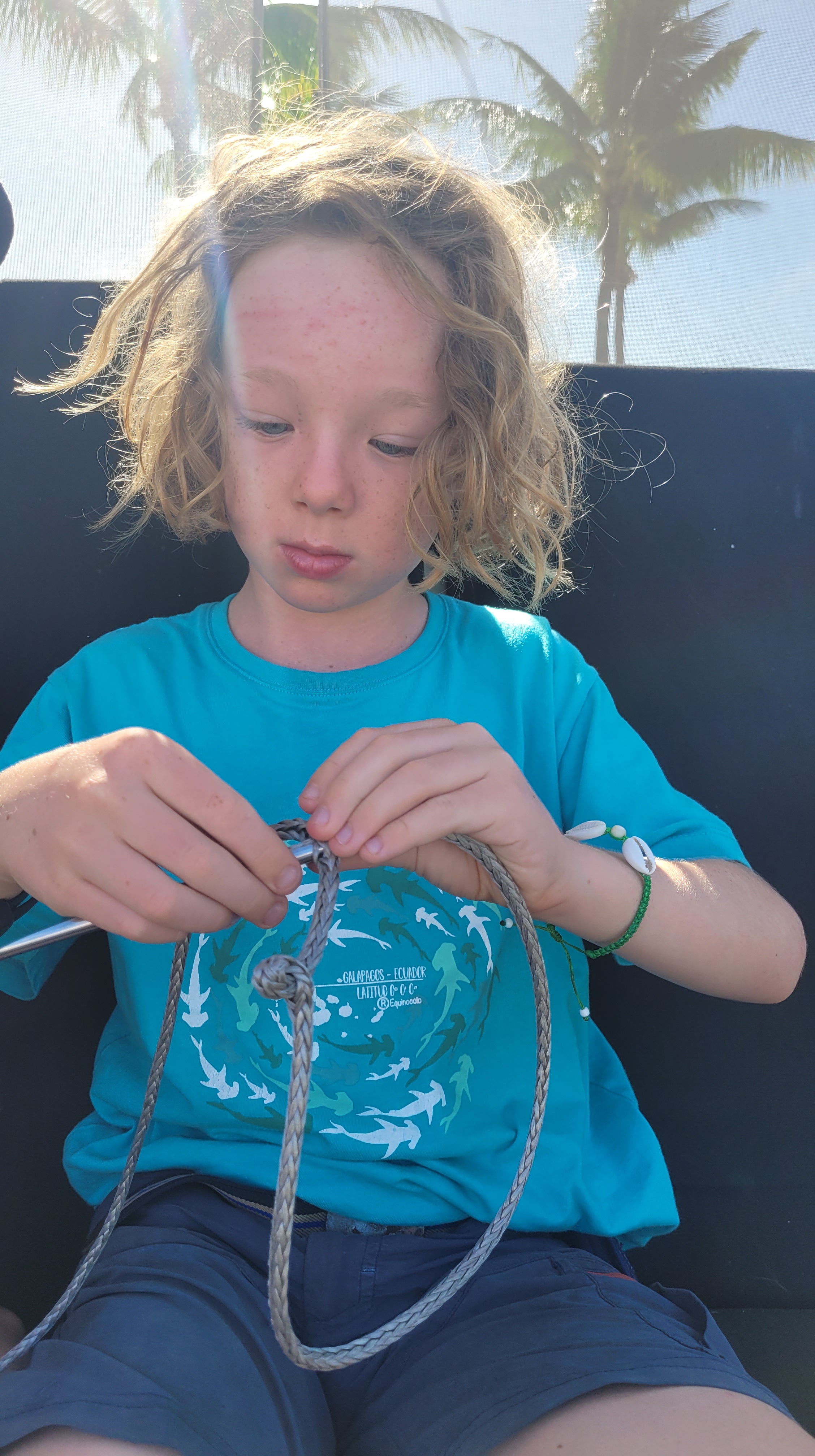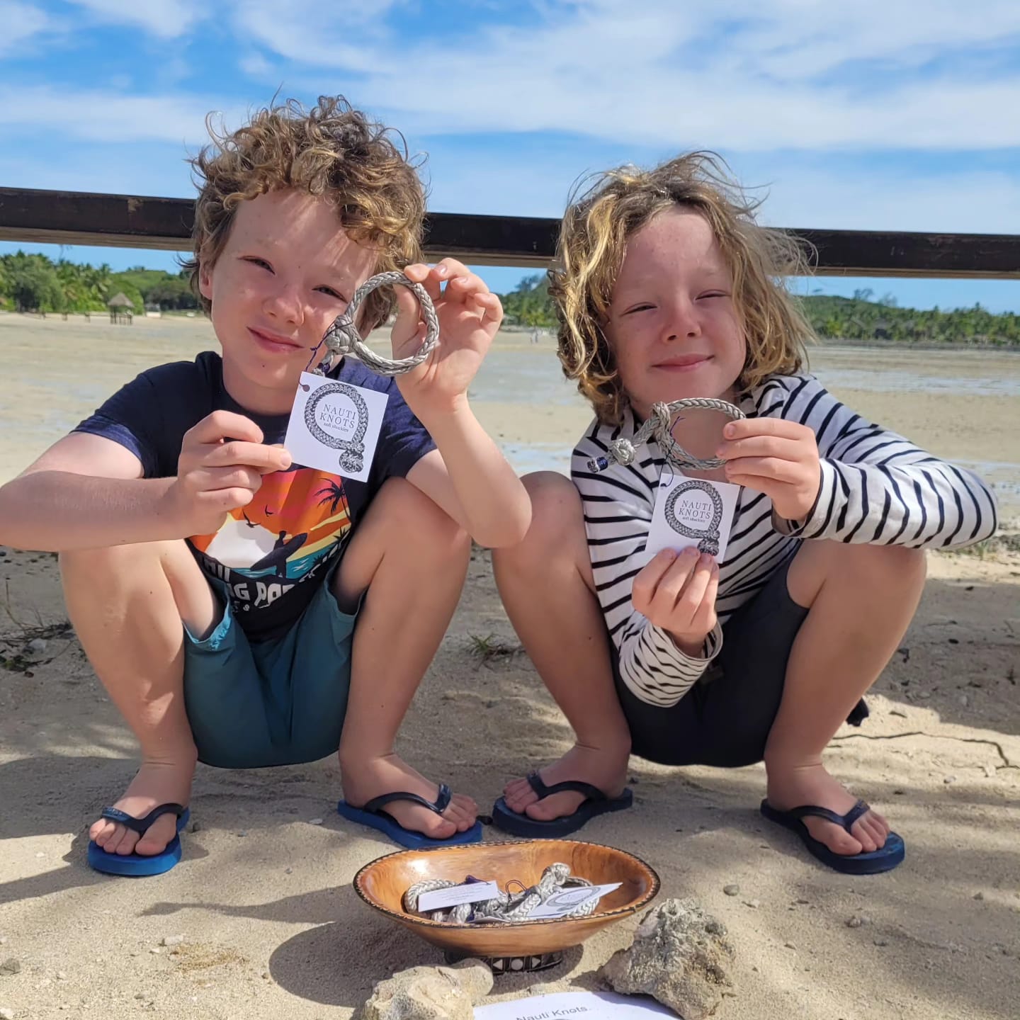 Musket Cove is a kid boat magnet, and here we got to hang out with many of our favourites – Cinnamon, Miles Away, Wild Thing, Yebo and Voodoo. The boys were in their element, exploring, hanging out in the pool playing tag, drinking mocktails and extorting free pizza out of the resort staff. They also launched business empire ‘Nauti Knots’ making and selling Dyneema soft shackles to the Pacific sailing fleet.