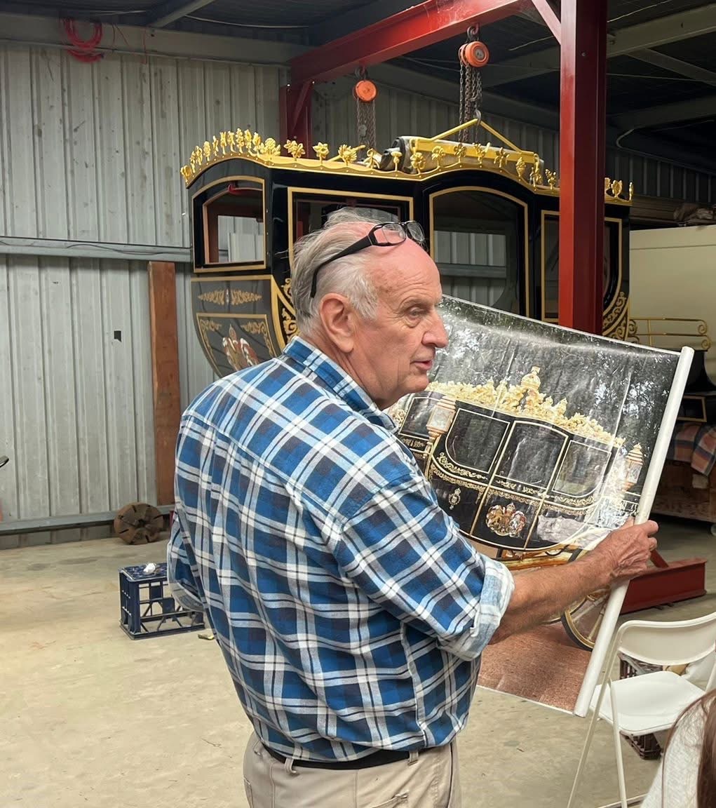 Whilst out exploring this area we had an extraordinary encounter with a man named Jim . We met him on a dirt track in the middle of nowhere outside an unprepossessing metal shed. He told us a story so incongruous that we assumed he must be a fantasist. But incredibly, it transpired that Jim really was the sole Royal Coach Builder for the British Royal family. He generously showed us around his workshop where he was putting the finishing touches to his latest creation – a golden, bullet-proof king’s carriage which will soon be flown to London. Such serendipitous encounters and unexpected connections enrich our travels beyond measure. Thank you, Jim.