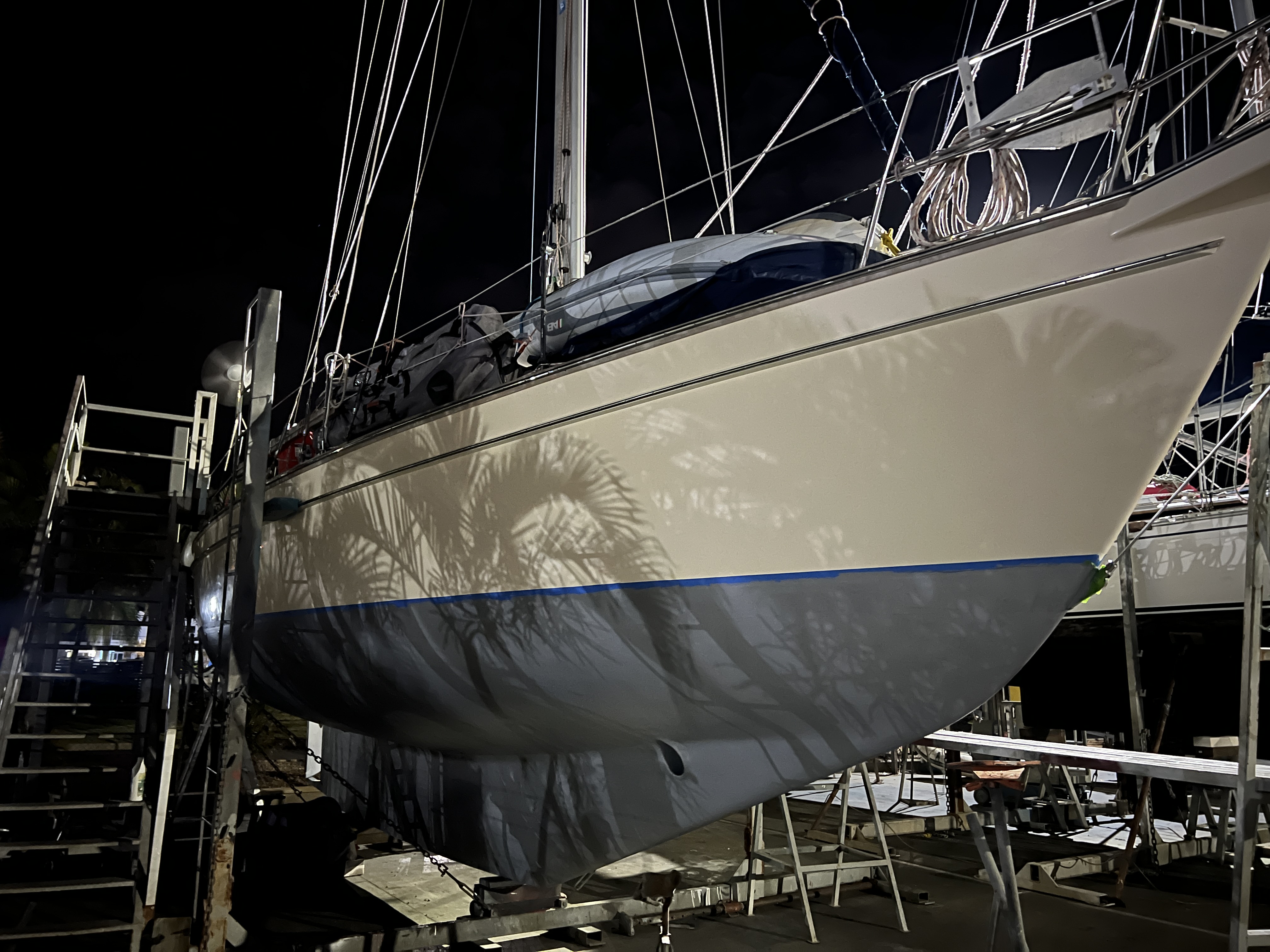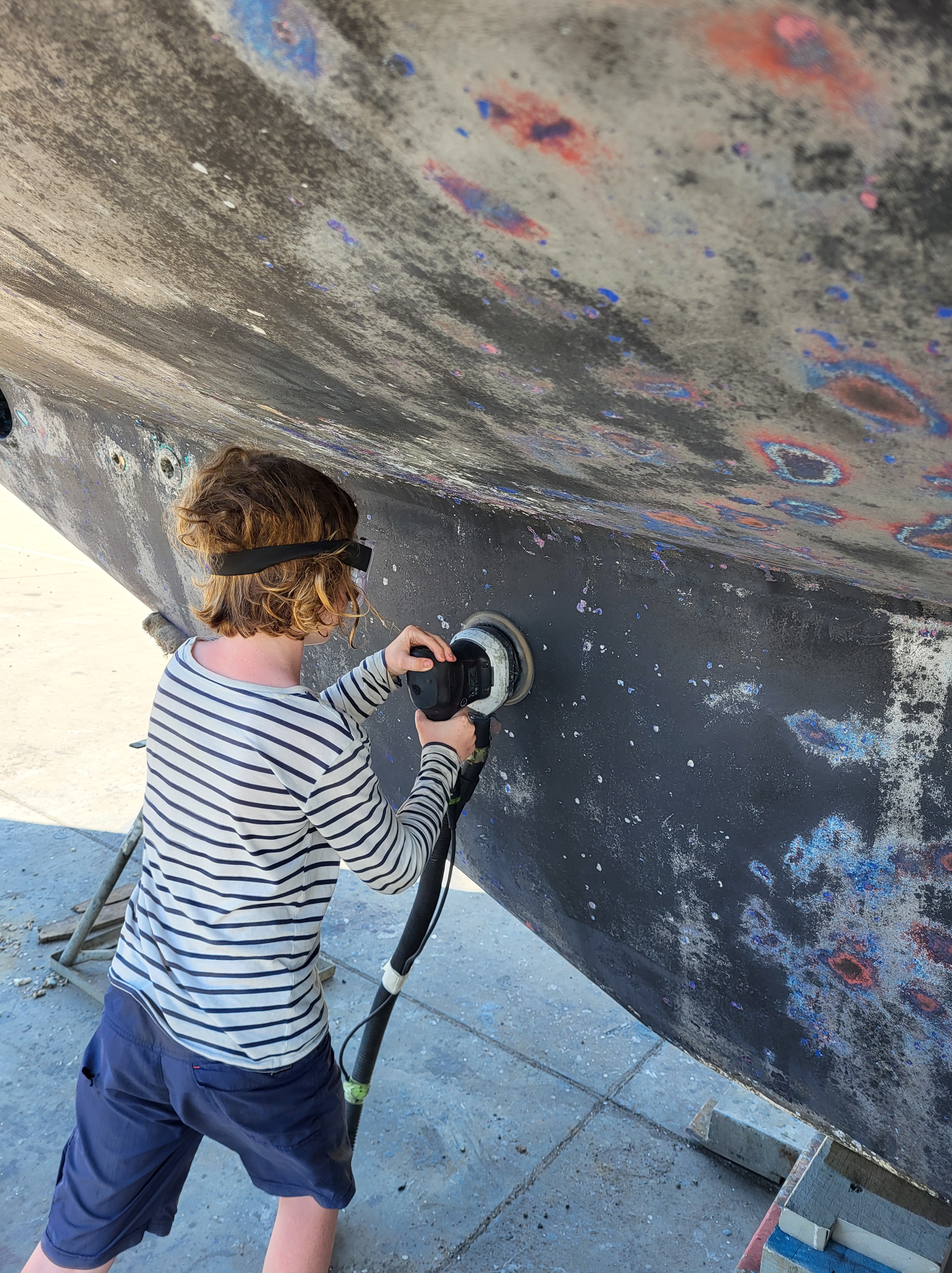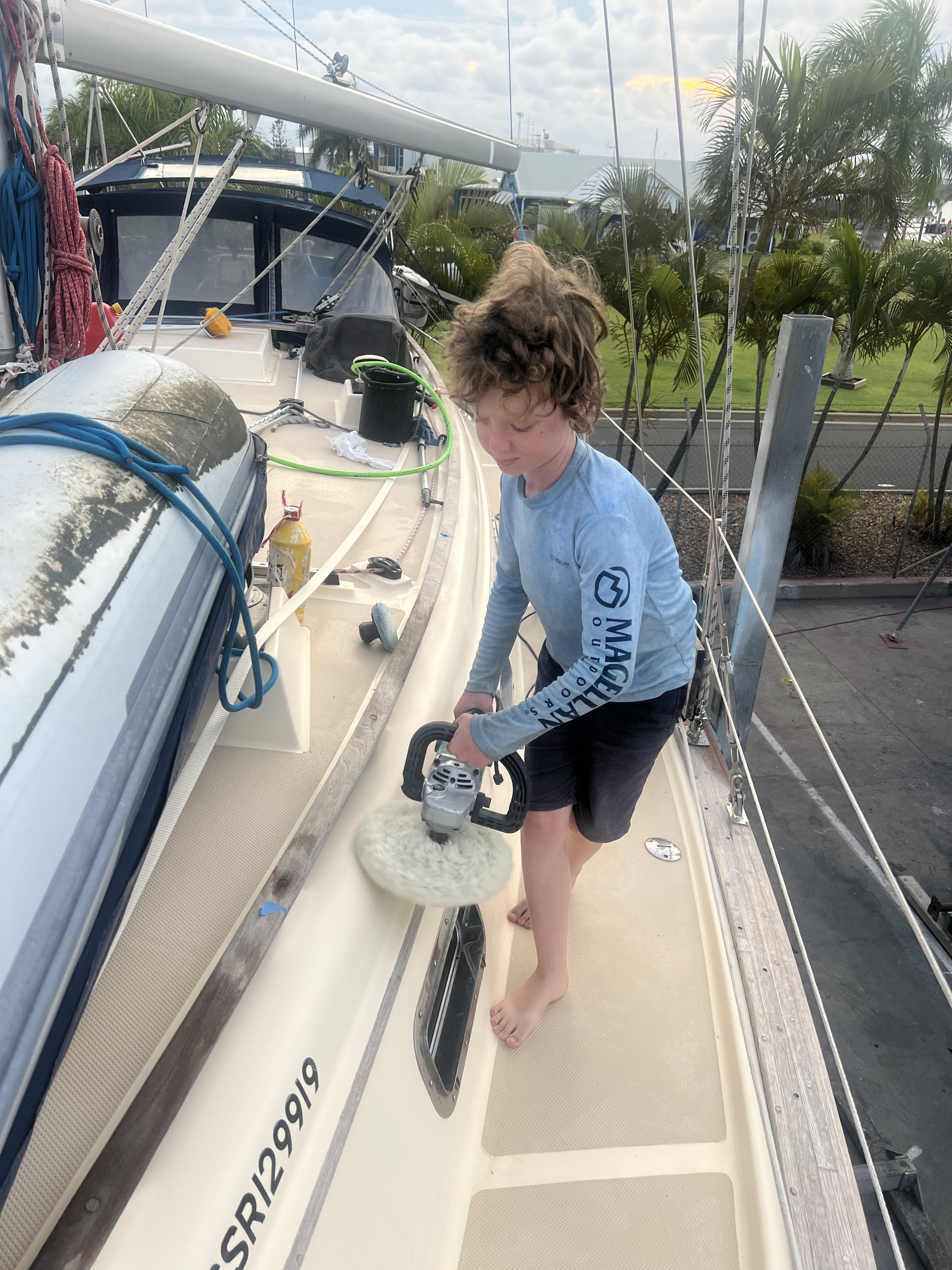 Next stop was Bundaberg Marina where we hauled Mowzer out in order to scrub her bum and apply new antifouling. A week’s hard labour ensued – scraping, sanding, painting, polishing but mostly sweating… Our Pacific friends, Chezza and Richie of Serenity Now kept us sane and entertained with card tricks and beer.