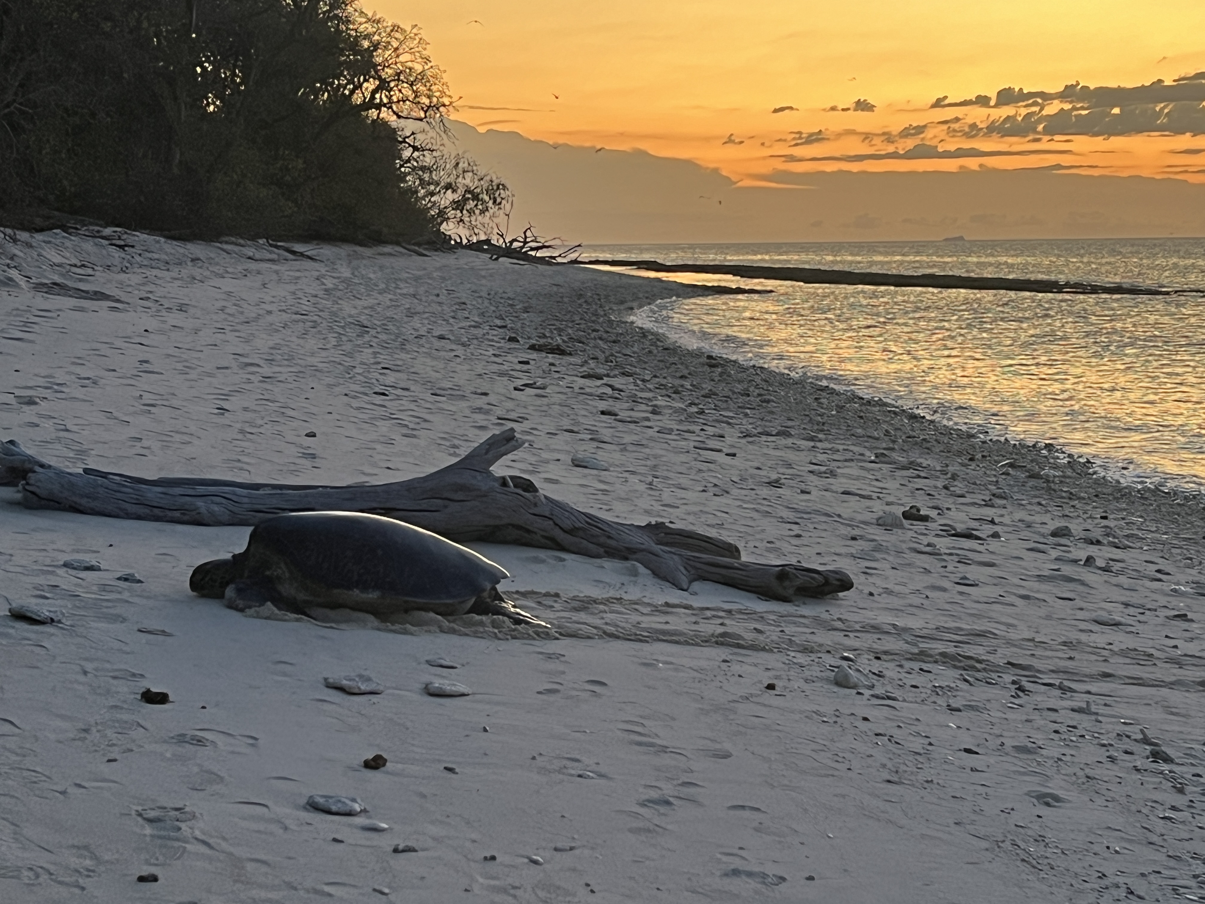 At dusk one evening we watched as 20+ female Green turtles hauled themselves up the beach where, over a period of several hours, they first built body pits then, using their rear flippers, dug chambers nearly a meter deep before laying several dozen eggs. Such an epic experience…