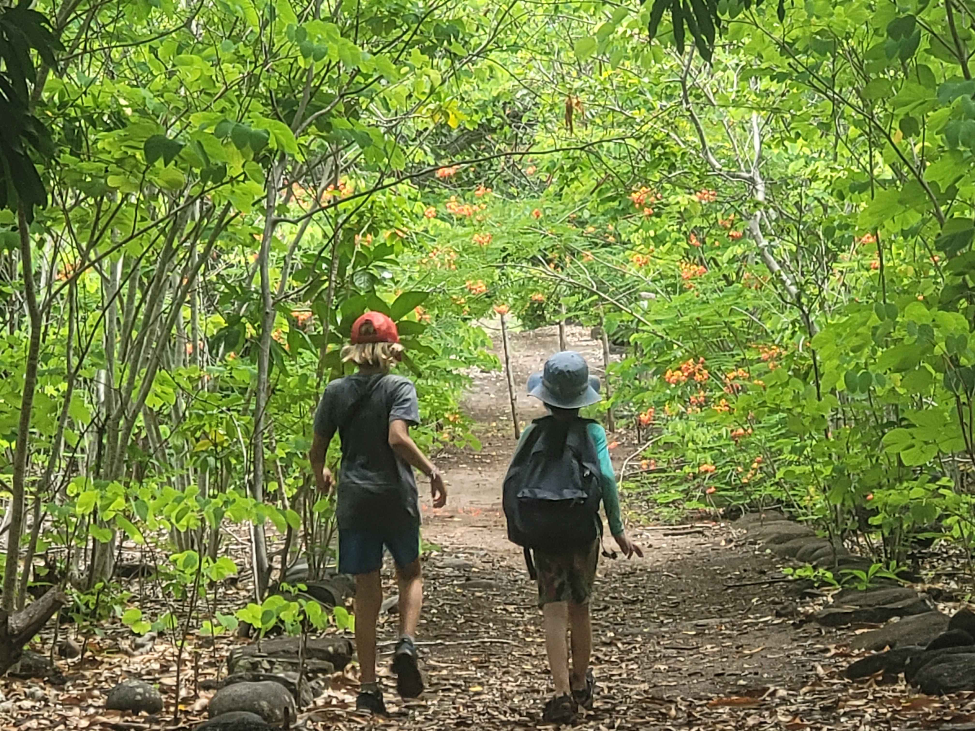 Our fifth and final destination among the Marquesan islands is Ua-Poa, a majestic island crowned by twelve dramatic basalt pinnacles and surrounded by lush rainforests. Our anchor found its place in the picturesque Hakahetau Bay. Accompanied by friends from SV Cinnamon, we embarked on a hike through tropical fruit orchards filled with star fruit, pamplemousses, and limes, ultimately leading us to a breathtaking waterfall. However, our idyllic swim was cut short by a swarm of particularly aggressive mosquitoes.